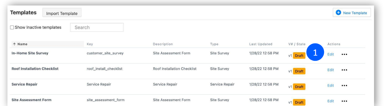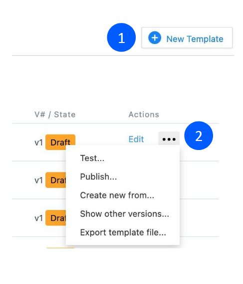 - To create a new version of a template, simply click edit to the right of the template name(1). This will create a new version of the template you can edit.