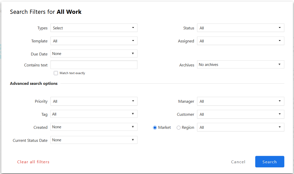 2. This will bring up a menu of all project search filters, select and edit the criteria that you would like to create a view from.
