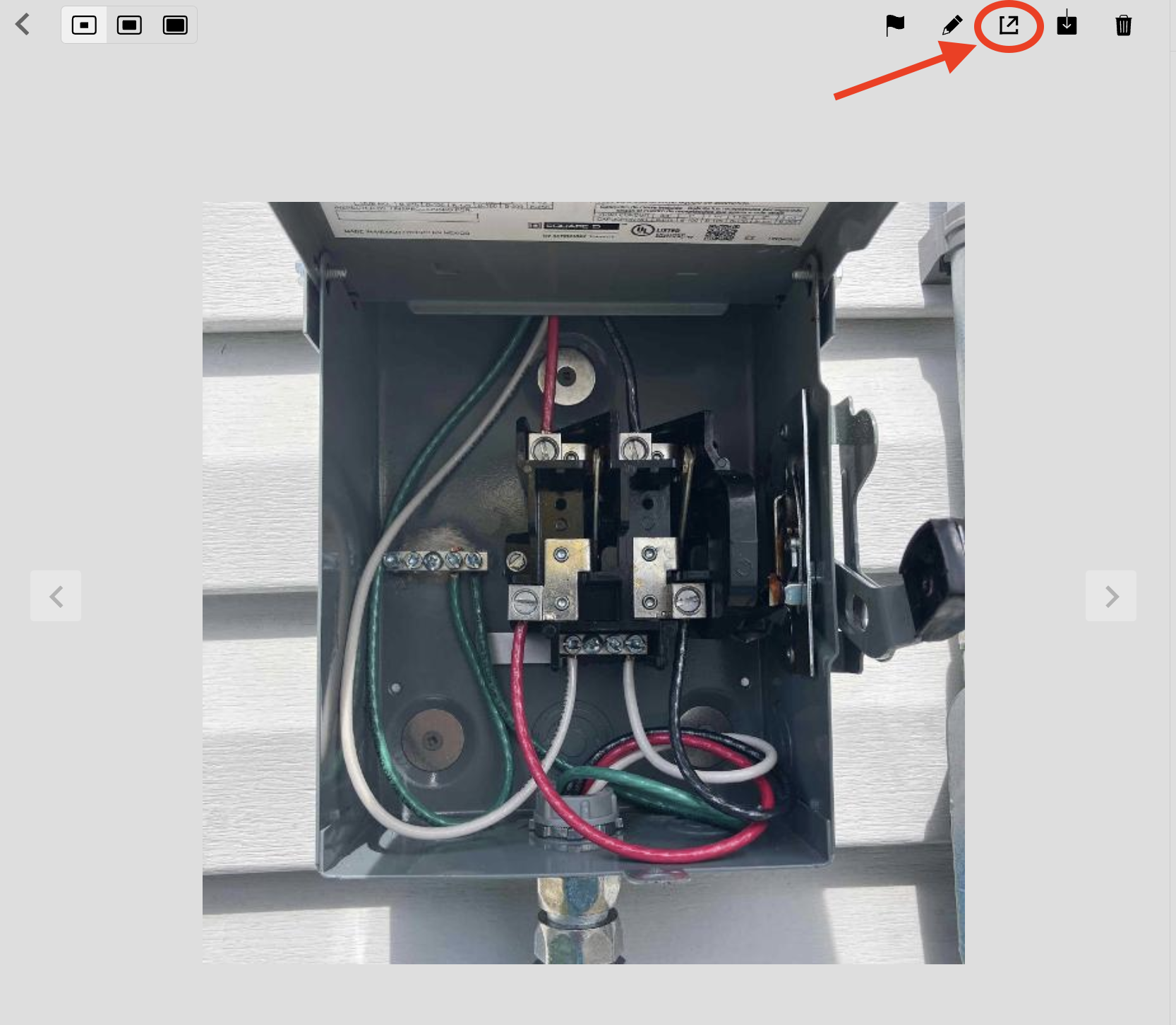 4. To view a high resolution photo on the web app, go to the photo viewer and click on the "open image in a new tab" icon. The high res photo will open up in another window.