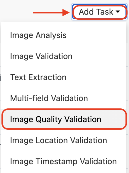 The Image Quality Validation task evaluates the quality of all images in a project. It identifies potential issues—such as blurriness or low-quality image data—based on the threshold level you choose.