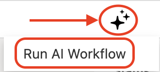 On the Project page, an icon allows an admin user to Run an Ai Workflow and it indicates the status of the AI Workflow execution. It appears in one of three possible states: