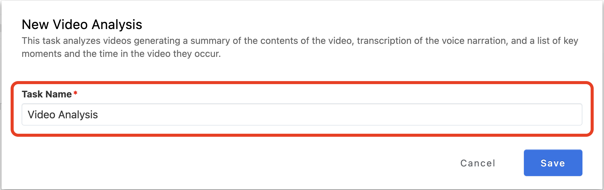 - Enter a clear and descriptive name for your Video Analysis task